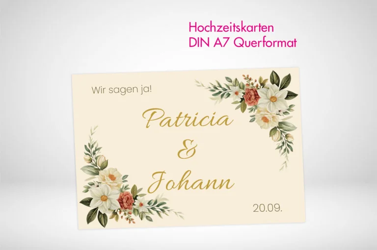 - Hochzeitskarten A7 frei gestalten oder eigene Dateien hochladen und drucken lassen