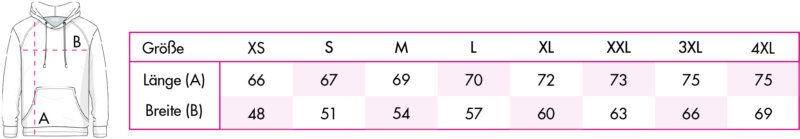 - Hoodie bedrucken in Größen: S, M, L, XL, XXL
